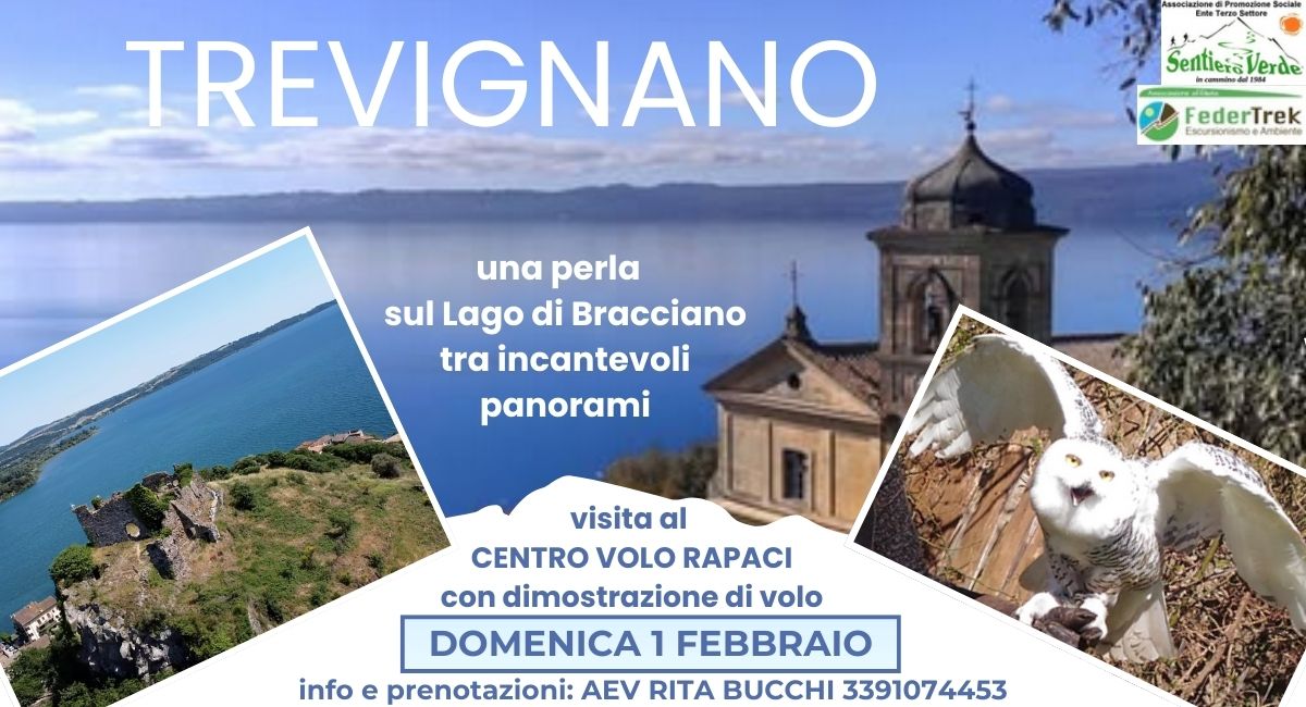 Un’escursione eccezionale, a Trevignano, una perla preziosa lambita dalle acque del lago di Bracciano, che ci regalerà meravigliosi panorami e scorci indimenticabili lungo tutto il cammino. Un pezzetto alla volta, fino a quando potremo abbracciare tutto lo specchio lacustre con un solo sguardo e sembrerà di volarci sopra …e laggiù, placidamente adagiate, scorgeremo anche Anguillara e Bracciano: che spettacolo!!!!!! Ma le emozioni non finiscono quì…ci attendono al CENTRO VOLO RAPACI dove chi vuole potrà prenotare il pranzooppure usufruire dei tavoli che ci riserveranno consumare il proprio pranzo al sacco e poi assisteremo ad uno spettacolo davvero coinvolgente: UNA DIMOSTRAZIONE DI VOLO DEI RAPACI che potremo anche am mirare davicino!!!!! Un’esperienza indimenticabile prima di prendere la via del ritorno che cicondurrà sul lungo lago che adesso potremo ammirare da vicino e poi nel graziosissimo centro storico, alla fine un pò di scale per raggiungere la Rocca degli Orsini, la ciliegina sulla torta di una giornata davvero intensa!!